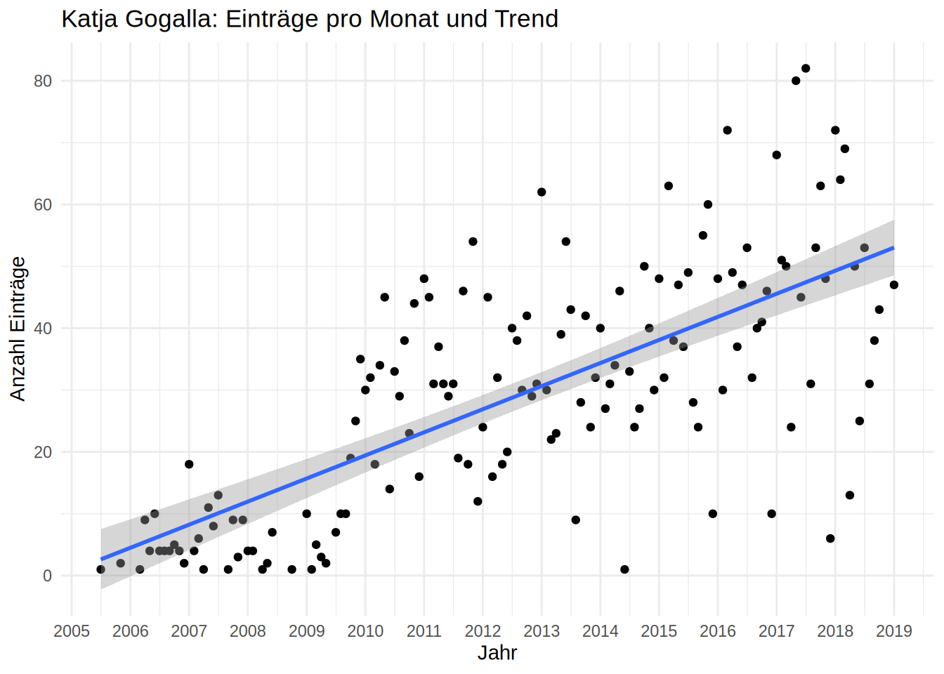 title = "Katja Gogalla: Einträge pro Monat und Trend"