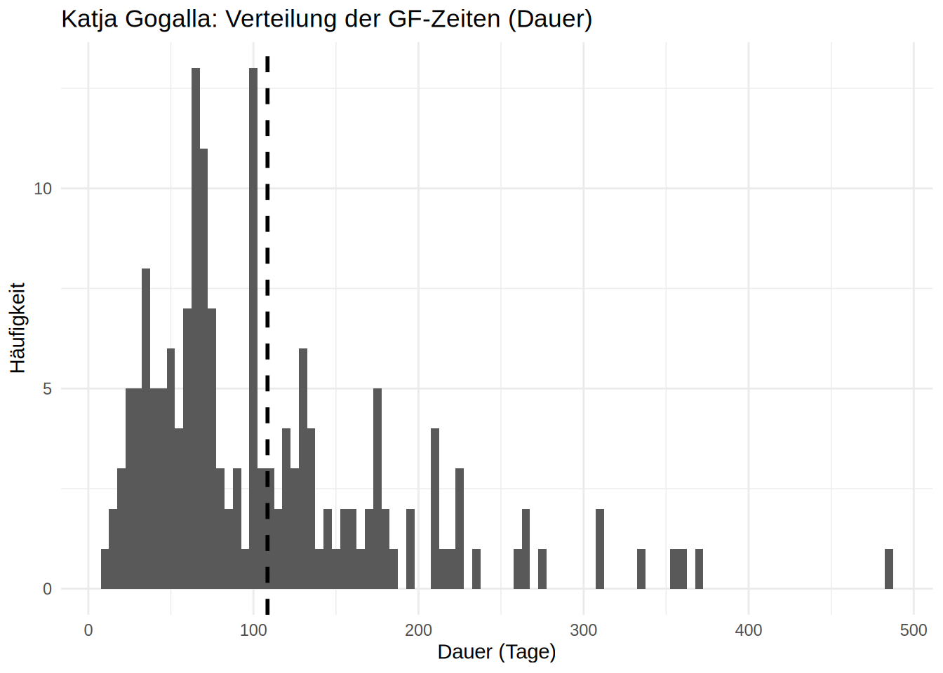 title = "Katja Gogalla: Verteilung der GF-Zeiten (Dauer)"