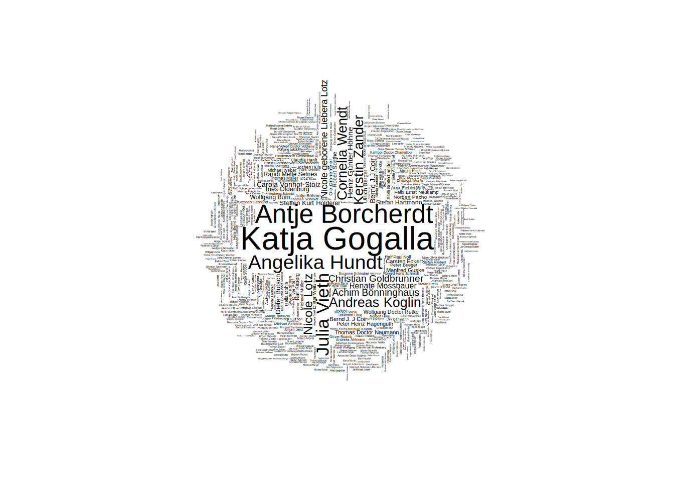 Das ganze können wir uns auch nochmal als Namenswolke anzeigen lassen. Um den Rahmen nicht zu sprengen, zeige ich hier nun die 500 Namen an, die am häufigsten eingetragehn sind.