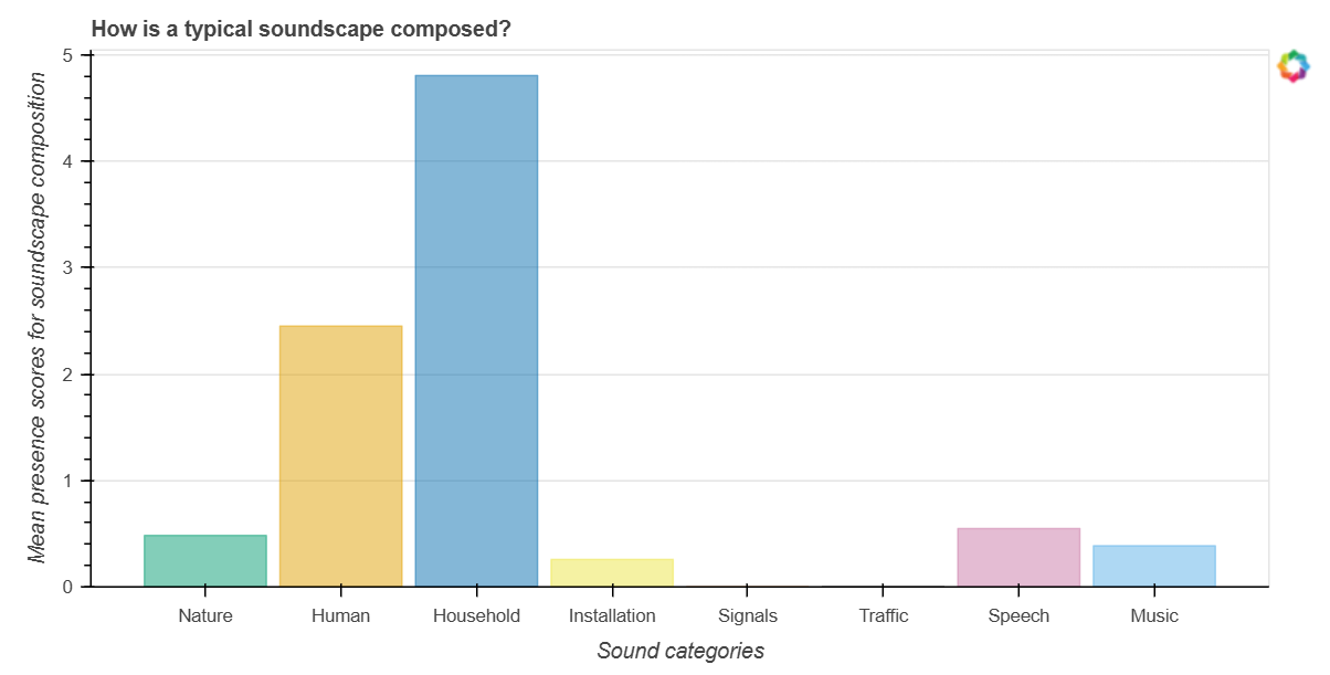 Secondly, person related meta data is visualized for example in the following bar plot to show composition of soundscape categories.